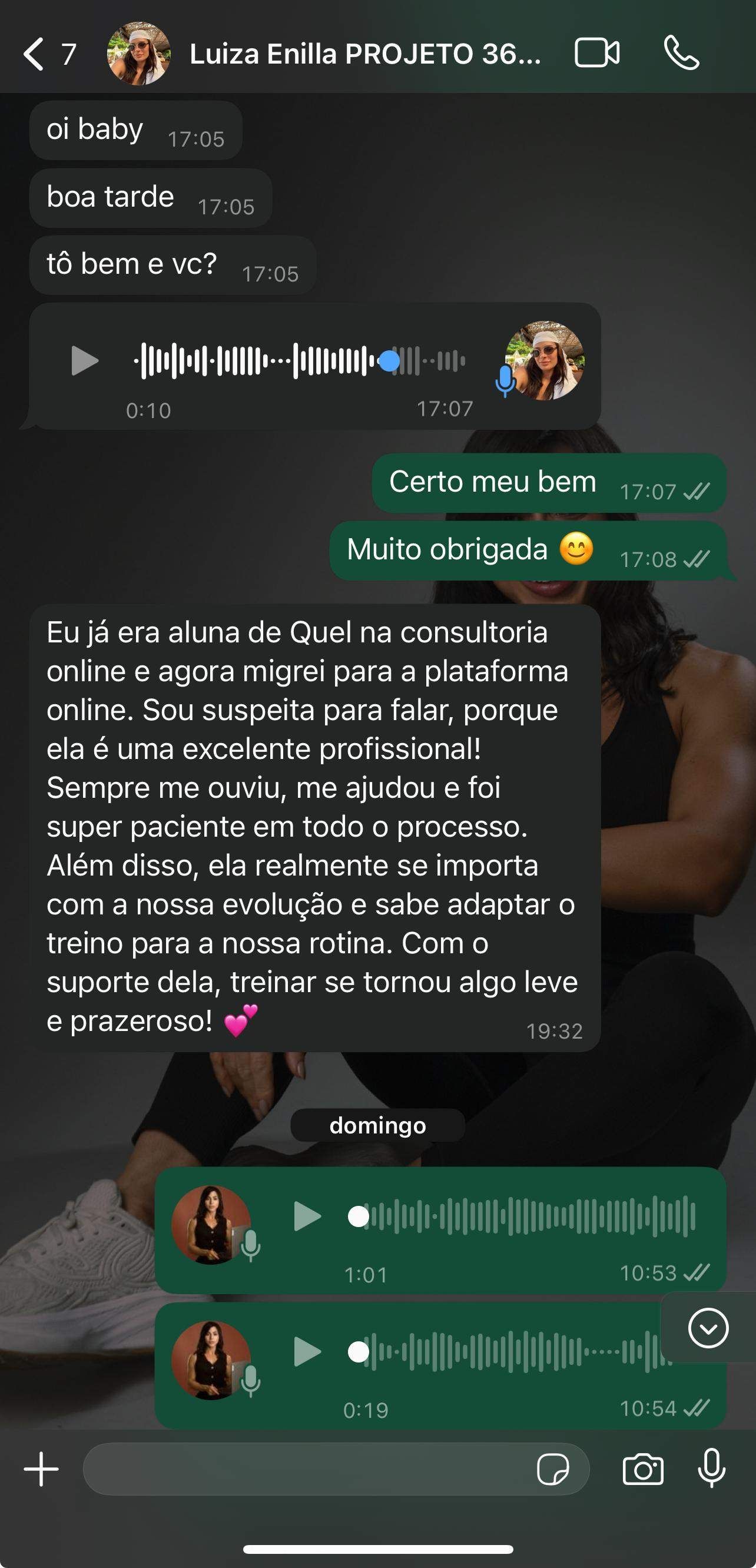Após anos no atendimento presencial, desenvolvi um método exclusivo para mulheres que agora está disponível 100% online. Meu compromisso é te guiar pelo caminho certo, com treinos eficazes e estratégias comprovadas para transformar seu corpo sem complicação.